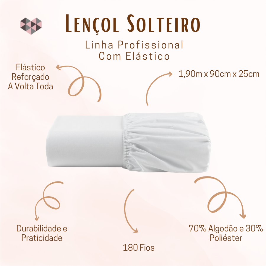 Os lençóis são confeccionados em 70% algodão e 30% poliéster, composição que proporciona toque macio, maior conforto térmico e facilidade ao passar, otimizando a rotina operacional. O tecido de 180 fios assegura equilíbrio entre robustez e suavidade, mantendo a aparência profissional por mais tempo.